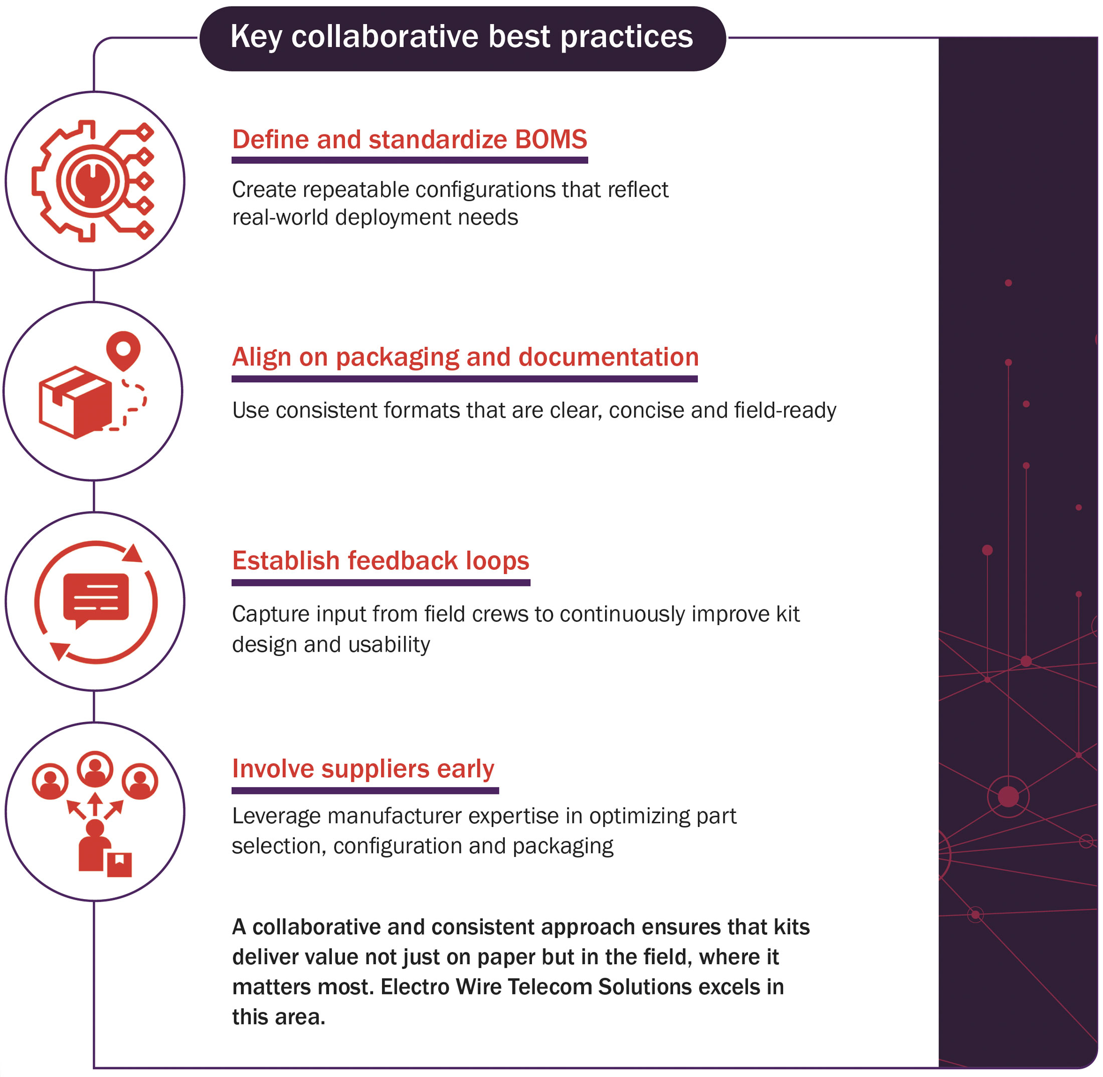 The success of any kitting and pre-assembly program depends on tight coordination between multiple stakeholders. From engineering to procurement to field ops, alignment is essential to ensure kits are not only technically sound but also practical and usable in the field.